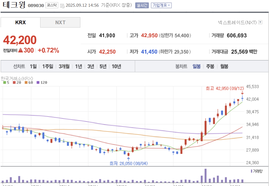 - HBM4 연관성: 솔직히 말씀드리면, HBM4 개발과 직접적인 연관성은 아직 명확하게 확인되지 않습니다. 하지만 SK하이닉스 파운드리의 핵심 파트너라는 점에서, HBM4의 기저 다이 설계 과정 등에서 간접적인 역할에 대한 시장의 기대감이 반영되며 '테마'에 편승하는 모습을 보이고 있습니다. 직접적인 수혜주라기보다는 기대감으로 움직이는 종목으로 이해하시는 것이 좋습니다.